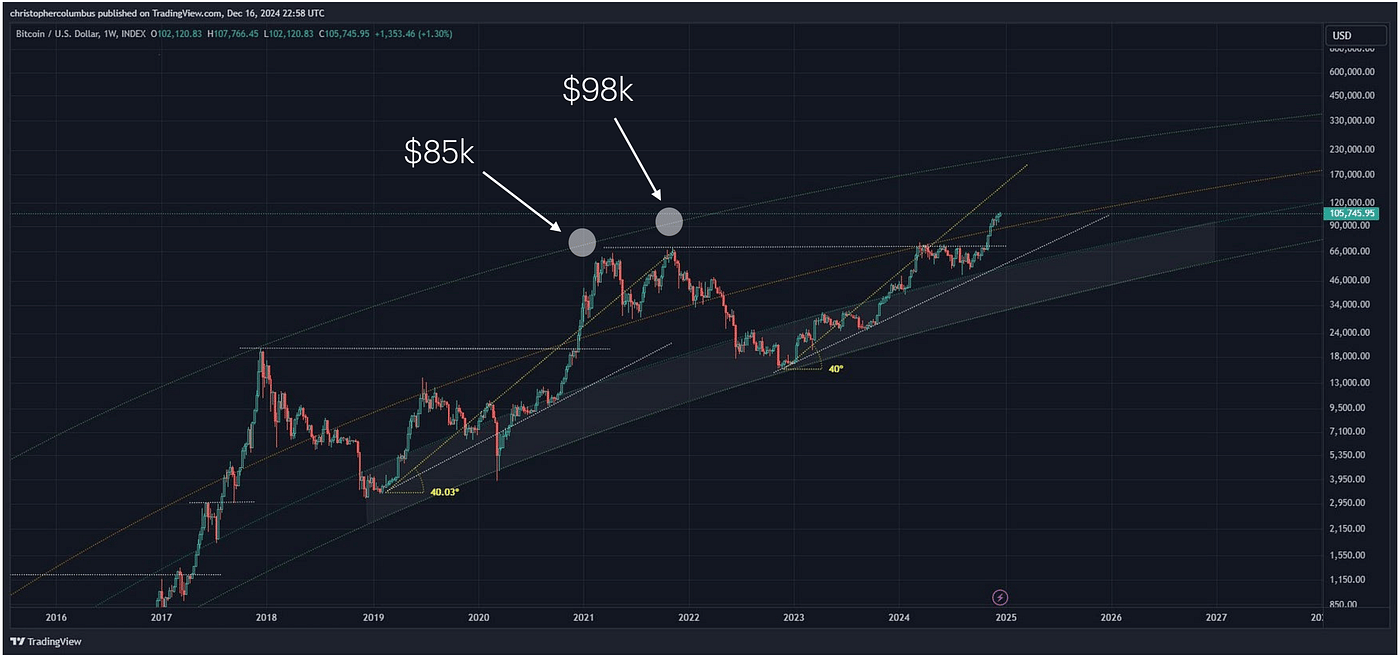 This metric will touch the top trendline if Bitcoin’s price goes up to $130,000 instantly.